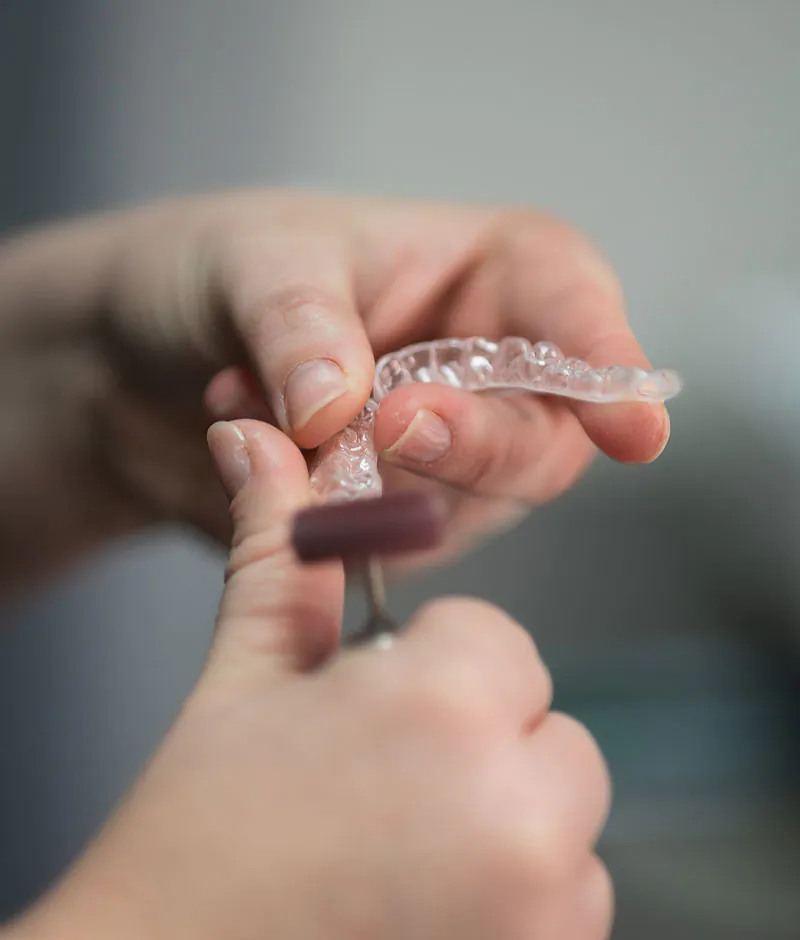 Our teeth aligners are custom-made in-office using clear plastic and acrylic materials. They are designed to fit tightly over the teeth to gradually move them into their desired position.