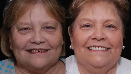 Dental implants are considered the most stable and long-lasting tooth replacement option available. Unlike traditional dentures, implants are secured in the jawbone, which helps prevent bone loss and keeps your smile looking natural over time. Implant-supported options such as All-on-4®, Smile-on-6, or implant-retained dentures provide improved comfort, chewing ability, and confidence compared to removable dentures.